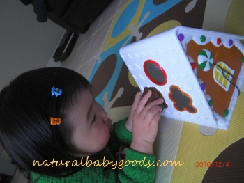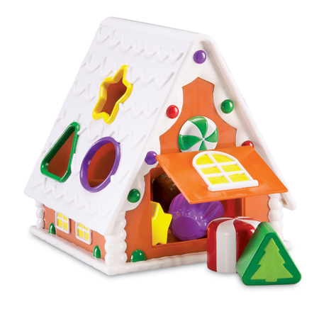 Shaped as a gingerbread house, this toy has six holes in which you can place different chunky candy shapes, from stars to pieces of chocolate and even a gingerbread man. These little pieces are made from durable plastic and can be easily wipe cleaned and look just like they were when they were bought. Beside of being very cute this toy is an educational one as it brings to the kids the concept of colors and how to differentiate them. Also it explores the concept of shapes as it gives the child the idea of different kind of shapes, from a round circle to a shape of a man. In addition it challenges the little ones to imaginative play as the gingerbread house door can open so that different roles can be played being limited only by their imagination. Furthermore the child can explore and understand spatial conceptions, as they can see how the house is built and how the parts bind together so that when they want to draw a house by themselves they can reproduce it reporting to this one. Plus the composition of the ginger house is very appealing as it makes the kids wonder to delicious tempting treats.