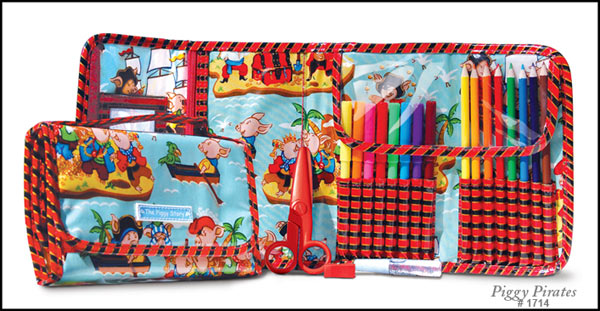 I got the Picasso Activity Set – Piggy Pirates for review recently. This is a great pouch with a very good animated print which all children are generally fond of. The soft scissors included help me to teach my daughter how to cut different shapes. With this pouch my daughter is able to put up all her crayons, pencils, markers, glue in an organized way. She feels very proud to carry this pack to school. At the same time, I feel she is learning to be more responsible and organized when finishing drawing. I noticed she was arranging her stuff in the pouch all by herself and without being instructed. She is really gearing up for her preschool!