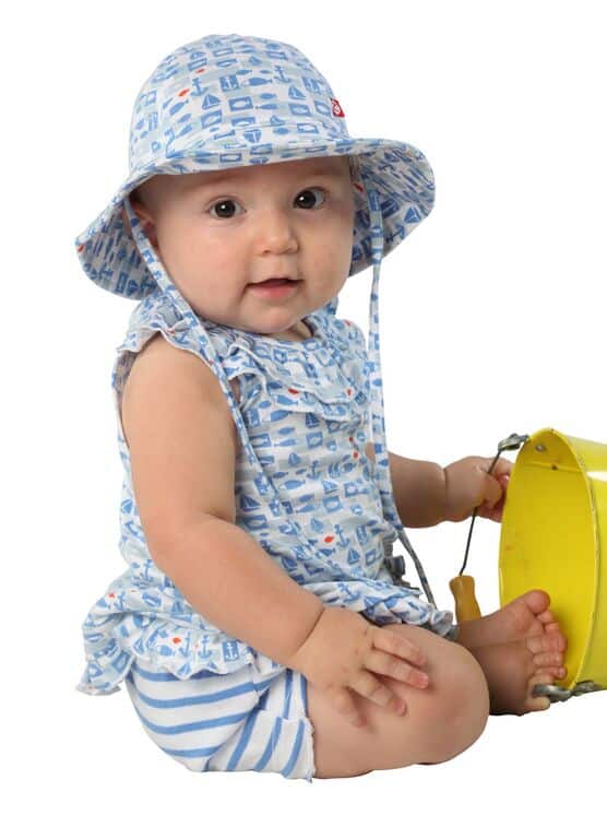 I especially love the maritime outfits for girls because of their flattering cuts! I wish they had it in my size! Just like the aquatic baby reversible sunshine top with mandarin patterns on one side and breton stripes on the other. It’s so breezy to wear and the cross-back design is super cute. Pair it with yellow baby skinny leggings for a totally summery vibe! These leggings can’t be used only once, so pairing it with the sailing school baby screen swing tee will get your baby girl ready for a boat ride! Don’t forget to top it off with a periwinkle candy stripe baby sun hat to make her totally adorbs!