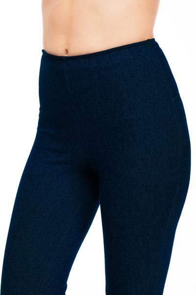 The Slim cut jeans (denim) by Svelte are a straight leg cut with an original and timeless, dark indigo color. The material is made of custom denim fabric combined with spandex that makes for a stretchy and comfortable feel when wearing. The waist is a high cut and created with a soft and non-existent panel that stretches comfortably across the tummy. The straight cut with a slim fit creates a very flattering look for any woman while still maintaining comfort, which is hard to come by with jeans.