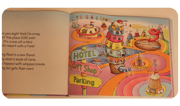 The story of The Ice Cream Hotel tells of the delicious and mouth-watering adventure of once a bored little boy to an ice cream hotel for kids where everything is edible. He then enjoys himself in such a delightful hotel with his dog. My daughter loved the idea of having to get to stay at such a marvelous place where a pool is made of chocolate fudge, bed of whip cream and walls and floors you can actually get a taste of. Each page bursts with imaginative and wonderful illustrations of the Ice Cream Hotel with floors of different flavors and more. Kids will definitely go through each page with keen observance just so they can make a picture of imagining themselves being in a real ice cream hotel. The concept might even strike their creative minds to make up more of what else might be there in the hotel— a rocky road lawn for a chocolate golf perhaps?