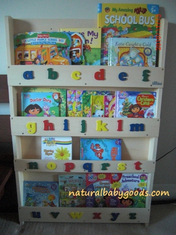 The beautiful bookcase that I got is handmade out of natural wood from sustainable resources. It also has upper case 3D alphabet letters which makes it more colorful, educational and fun. This bookcase is manufactured to safety standards and which is very important for me as well. I was able to fix it safely and securely to the wall and it was easy to assemble.