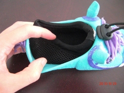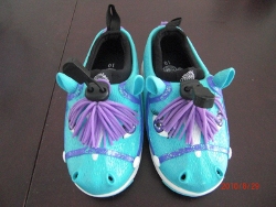 The Weboo shoes come in all different kinds of fun animals, including zebras, puffer fish, sharks and dinosaurs. I received the Tisha slip-on, which is a shoe designed as a pony, complete with mane and tail. The detailing on the shoe is incredible: the texture of the shoe has grooves to look like real horse hair, there are little indents in the front for the nose holes and two realistic looking horse ears poke out of the front. Two brilliantly colored eyes and a matching bridle round out this adorable shoe.