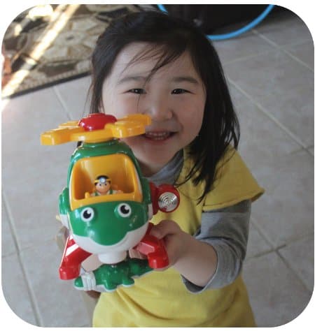 One is the Harry Copter’s Animal Rescue, this is super cute and adorable. Harry is also known to be very heroic but keeps his feet on the ground because he is so humble. According to the box, he loves animals especially pandas. What I love most about this toy is that its motor features. Yes, it does fly and this amazed my daughter a lot. It also has sounds, which can also help with the development of my little one and even other children. Its motor is friction-powered and its realistic engine sounds will surely capture the attention of your child. To activate the motor, you will need to squeeze the trigger action. Since Harry is a helicopter, he flies and picks up animals. What my daughter enjoys is turning on the searchlight to drop the animals. This really promotes imagination and I love that she is learning loads when she is playing with Harry Copter. At her age, she loves to role-play and explore new things and Harry Copter did not disappoint. Help Harry save Amanda the Panda and Leo as well, the Lion. Oh of course, there’s Eric too, the crocodile.