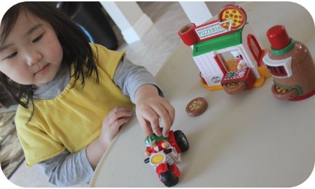 Another toy that I got from WowToys is Mario’s Pizzeria. Mario runs this pizzeria with the help of his delivery boy. My daughter enjoys playing with this a lot because of the magic over with this button to bake. I also love the push-along delivery trike and the three pizzas with different toppings that you will deliver to your customers. You can also spin the chef to choose toppings. Another great toy for role-play and exploration, which are both perfect for my growing daughter.